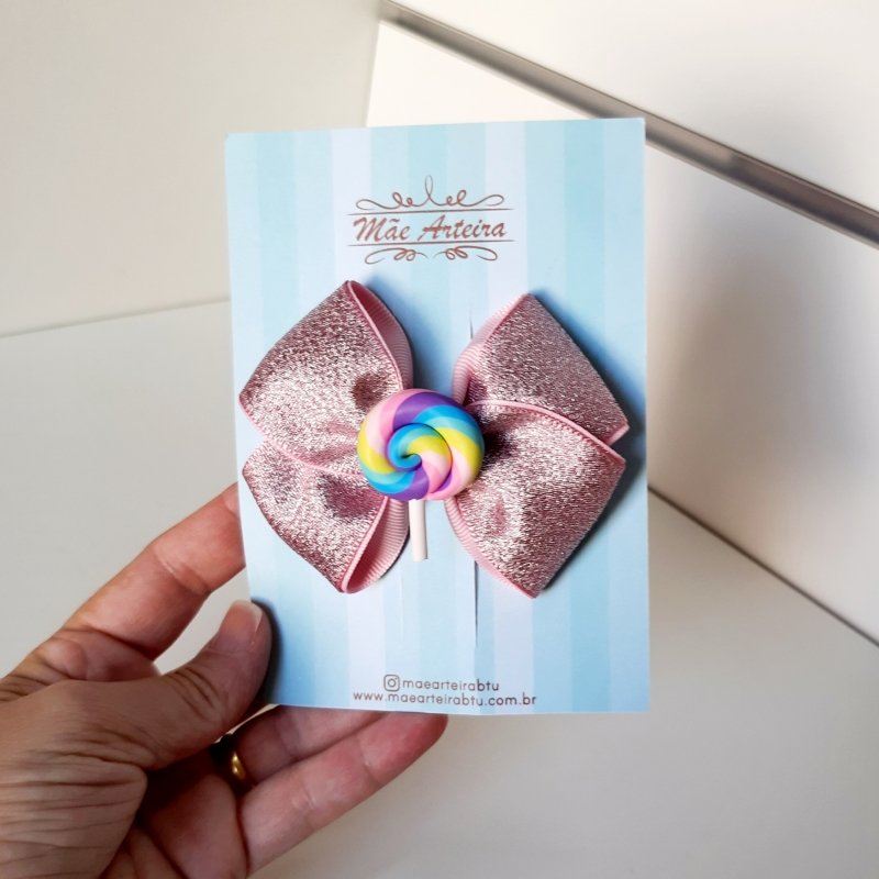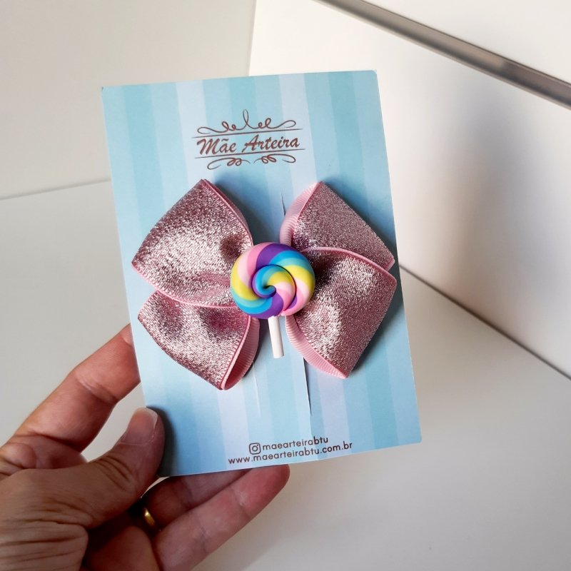 Laço Cruzado Médio Rosa Brilho Lolly pop