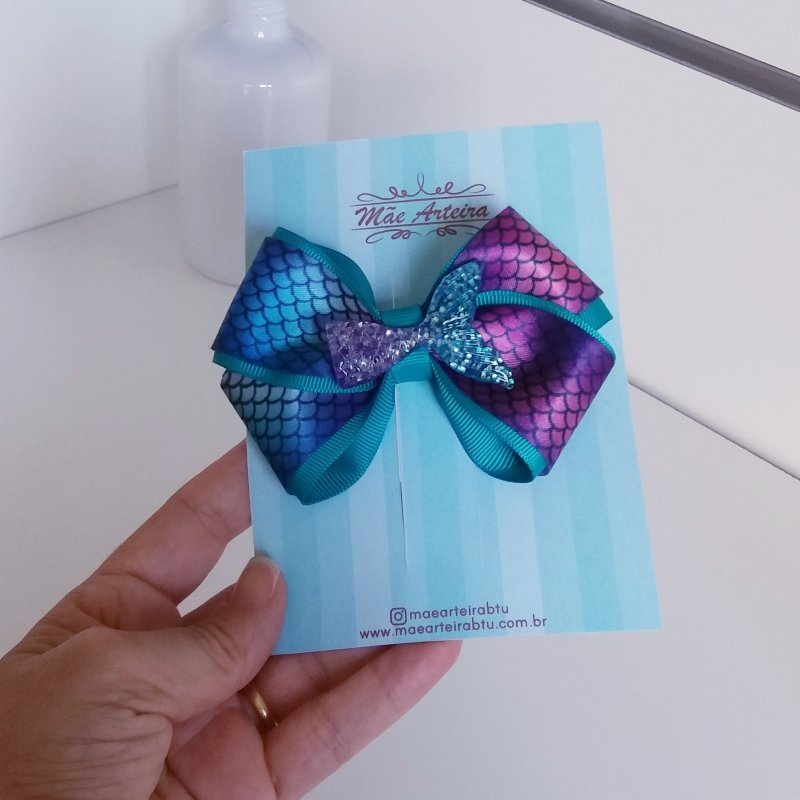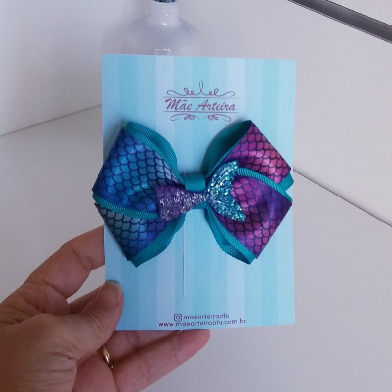 Laço Cruzado Médio Verde/Sereia Cauda Resina