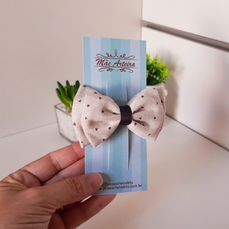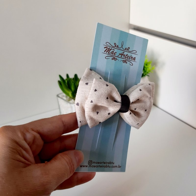 Laço Gravata Duplo Médio Linho Cinza Corações (Cod. B235)
