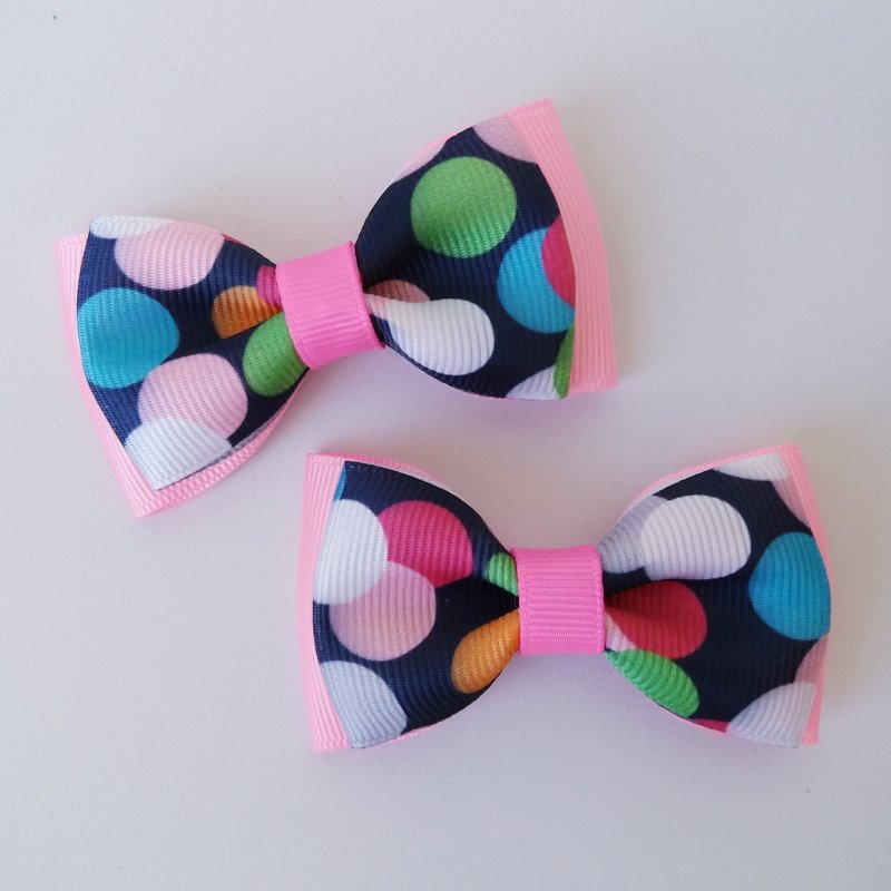 Par Laço Gravata Duplo Médio Rosa Chiclete/Poá