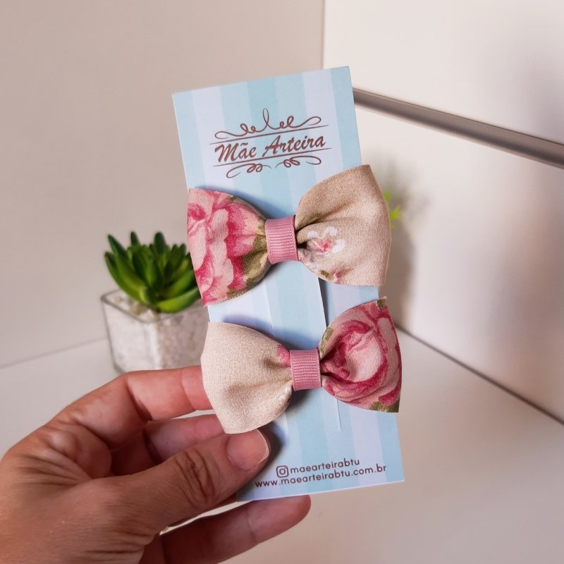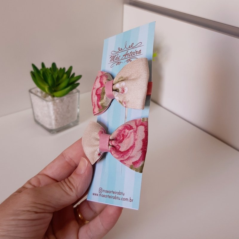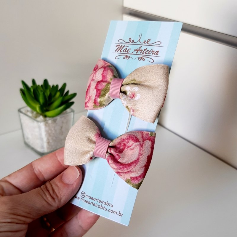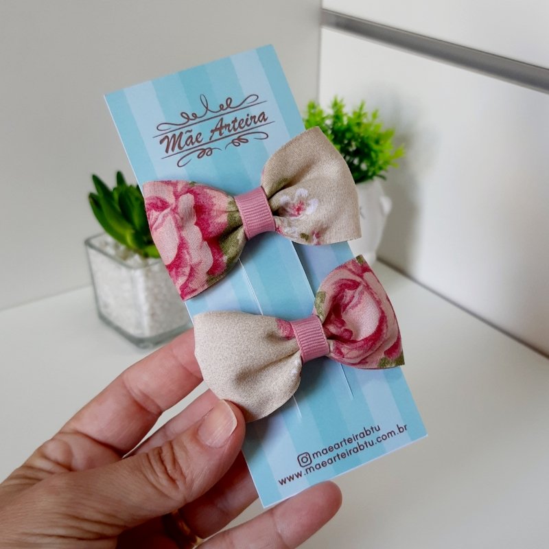 Par Laço Gravata Pequeno Tecido Floral (Cod. B239)