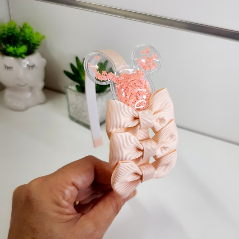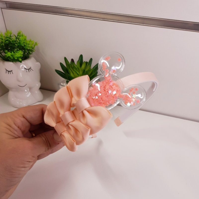 Tiara 3 Laços Média Salmão Minnie