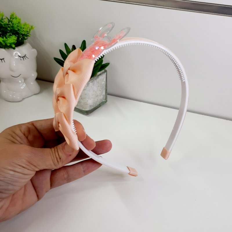 Tiara 3 Laços Média Salmão Minnie (Cod. B358)