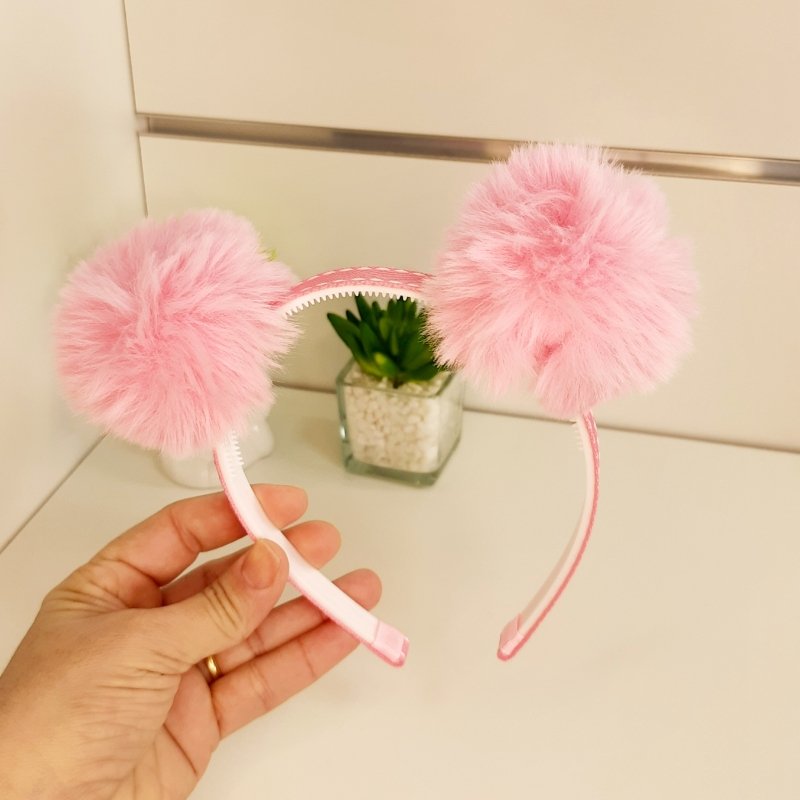 Tiara Branco Brilho/ Pompom Branco (Cod. B556)