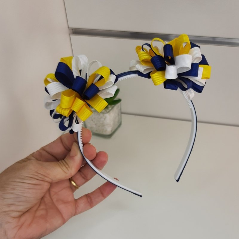 Tiara Jeans/ Coração Amarelo Pompons (Cod. B600)
