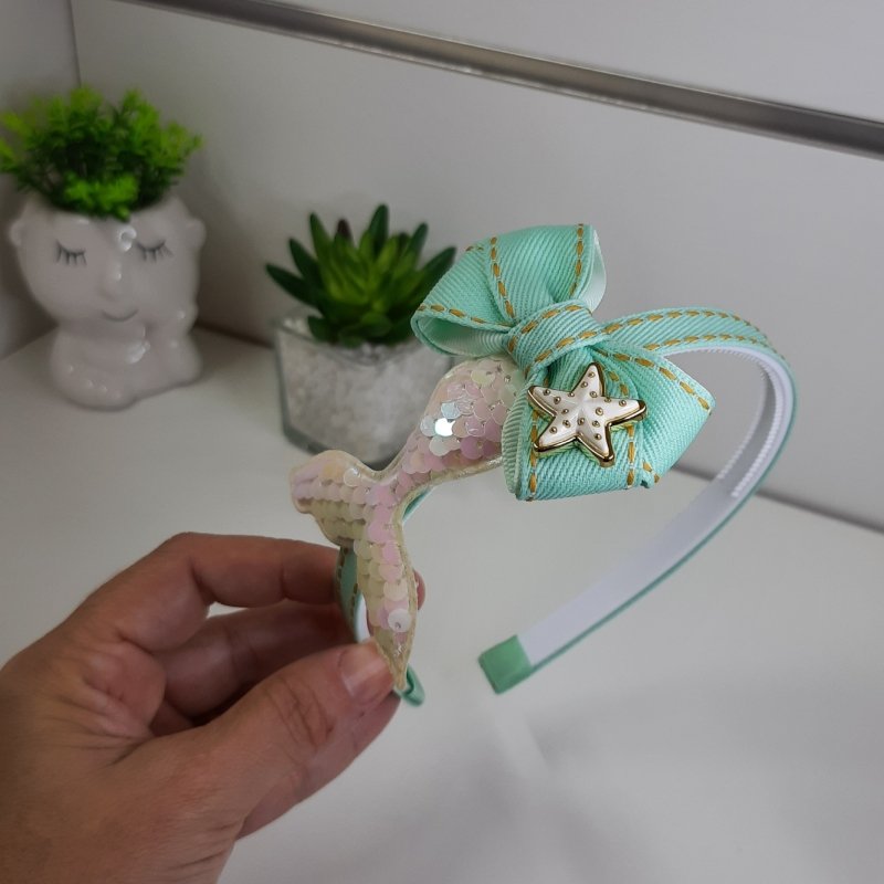 Tiara Laço Duplo Sereia Verde Água