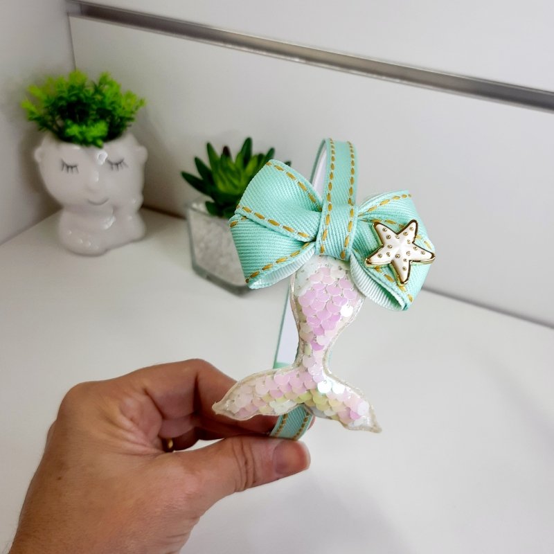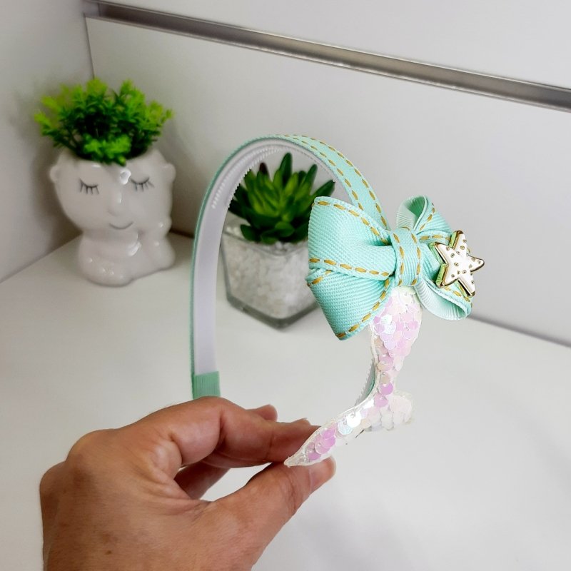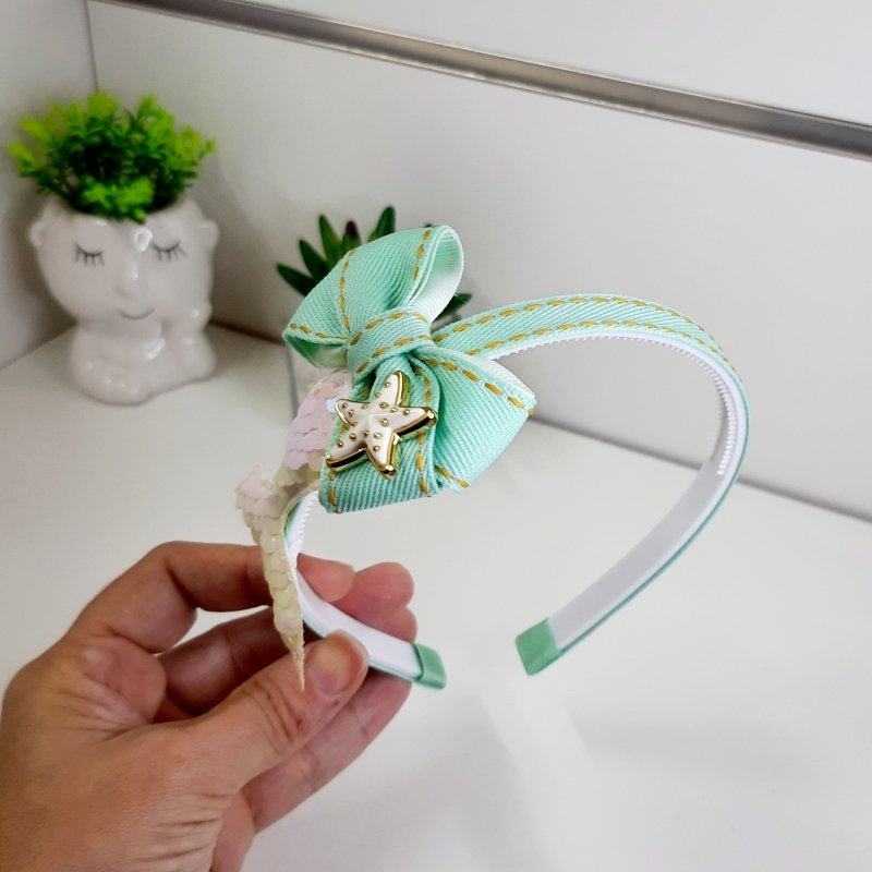 Tiara Laço Duplo Sereia Verde Água (Cod. B352)