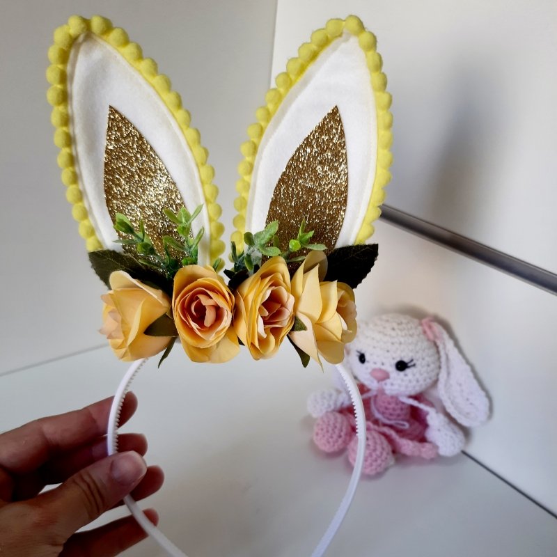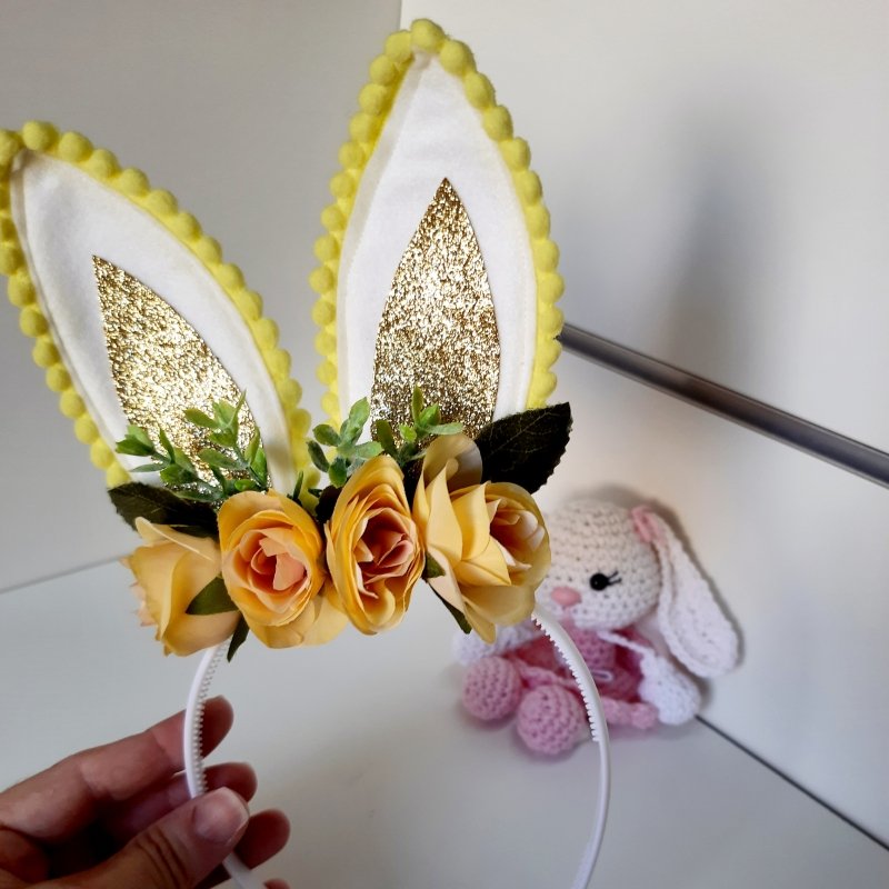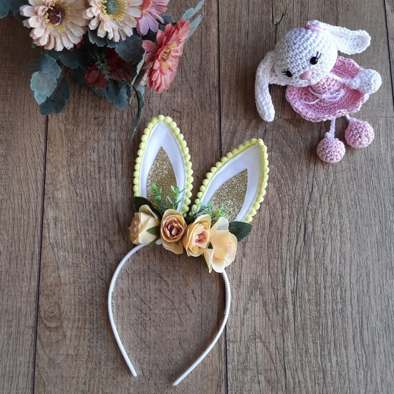 Tiara Orelhinha de Coelho Flores Amarelo (Cod. B273)
